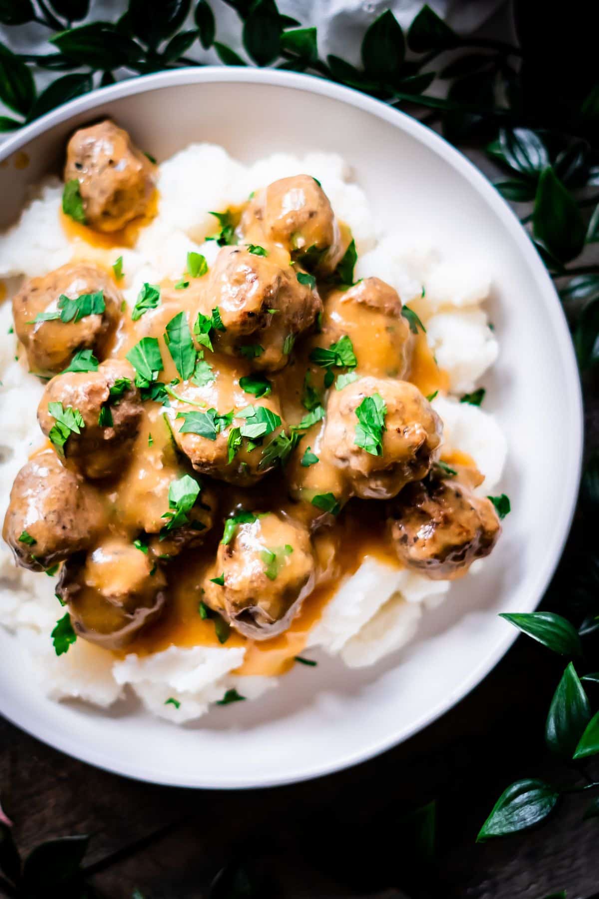 Just like Ikea, Swedish meatballs are typically served over mashed potatoes with a side of stewed lingonberries or lingonberry jam.