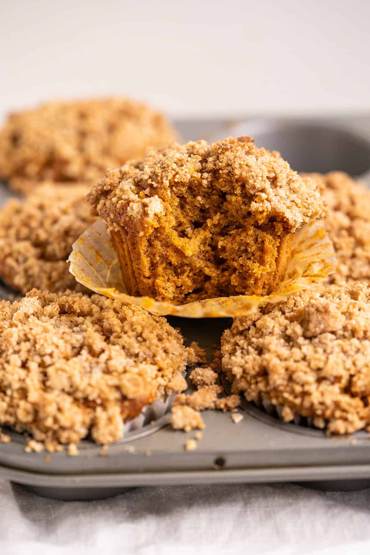These gluten-free pumpkin muffins bake up tall, soft, and bakery-style with a crisp cinnamon streusel topping. They're naturally vegan and packed with warm spices.